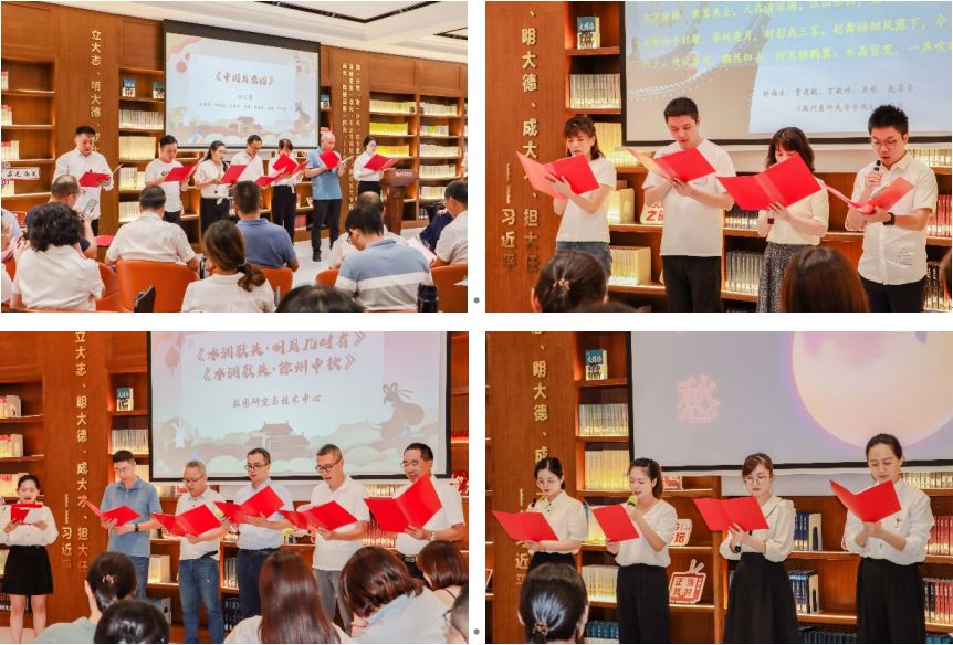 为喜迎中秋节和教师节,弘扬中华传统文化,营造浓厚的节日氛围,图书馆(期刊社)于2022年9月9日下午在青春之书房举办了主题为“诵经典 迎中秋”的诗词朗诵会,馆(社)领导和工会会员一起参加了活动。