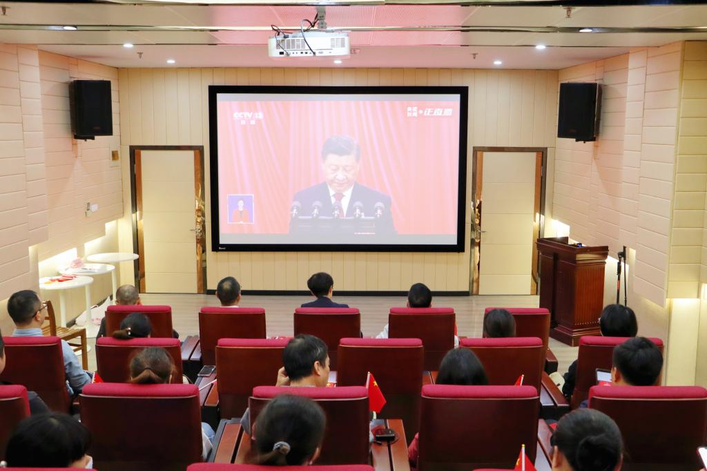 10月16日上午10时,中国共产党第二十次全国代表大会开幕会在北京隆重举行,习近平总书记代表十九届中央委员会作《高举中国特色社会主义伟大旗帜为全面建设社会主义现代化国家而团结奋斗》主题报告。为推动馆社全面学习和了解二十大精神,迅速掀起深入学习二十大精神的热潮,图书馆(期刊社)党总支组织全体党员集中观看了党的二十大开幕会现场直播,全体党员聆听了大会报告,开展了热烈讨论。