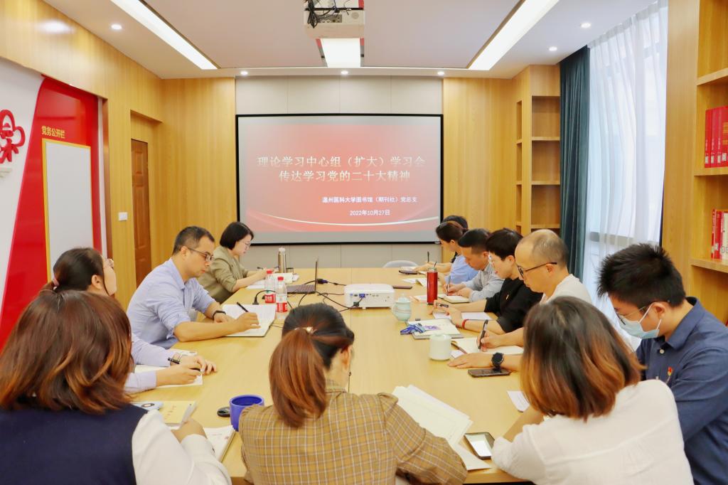 10月27日,图书馆(期刊社)党总支召开理论学习中心组(扩大)会议,专题学习党的二十大精神,传达学校党委理论学习中心组(扩大)会议关于学习宣传贯彻二十大精神的要求,对馆社开展学习宣传贯彻工作进行部署,理论学习中心组成员、各党支部书记及支委参会,党总支书记陈慧主持会议并讲话。