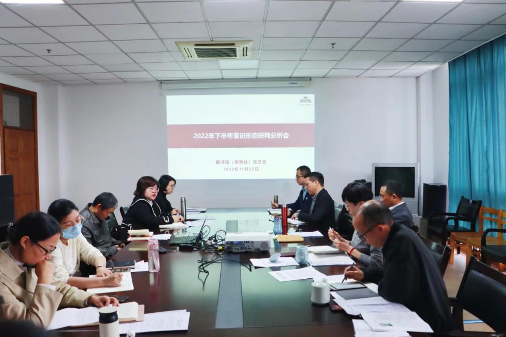 11月25日下午,图书馆(期刊社)2021年下半年意识形态研判分析会在A407召开。馆(社)领导领导班子成员出席会议,各科室科长、编辑部主任参会,会议由党总支书记陈慧主持。