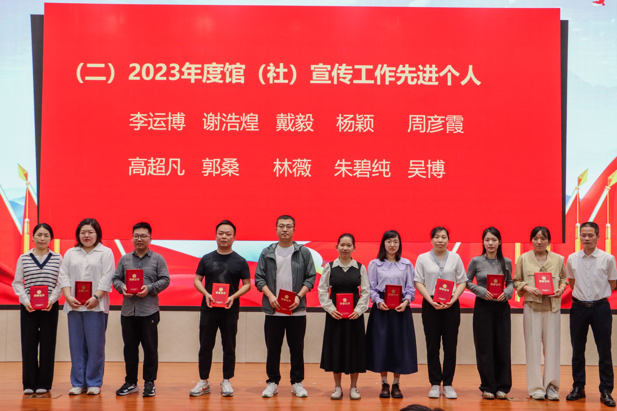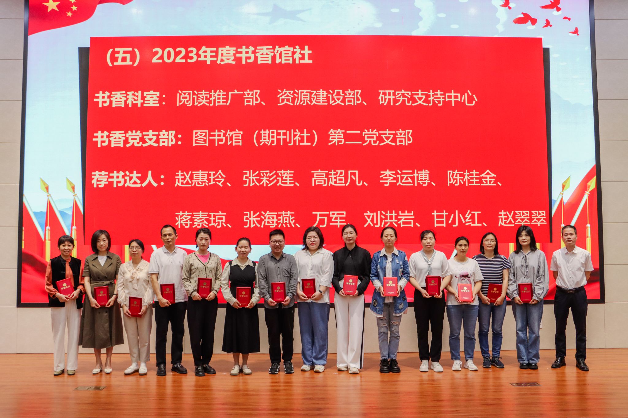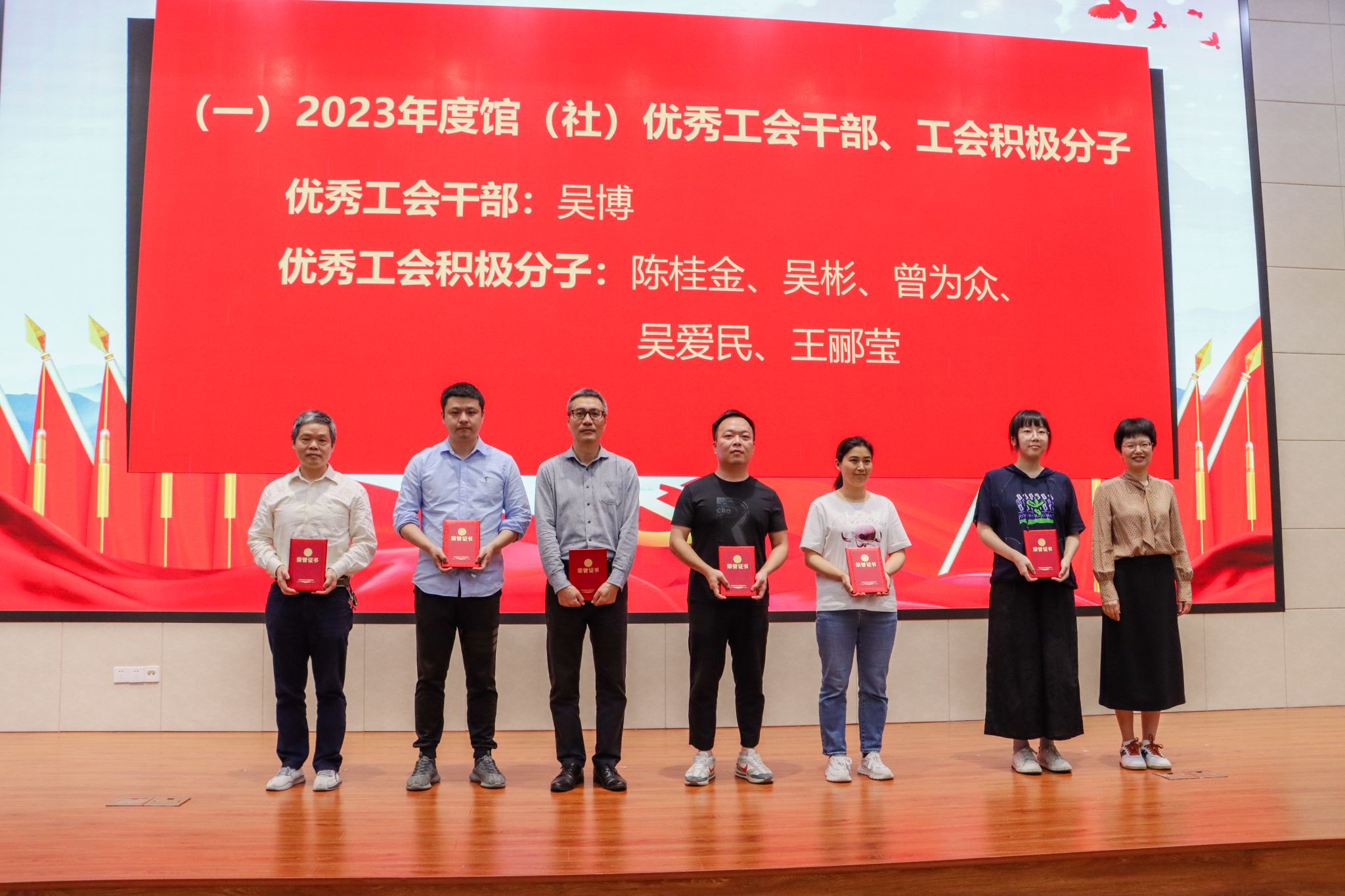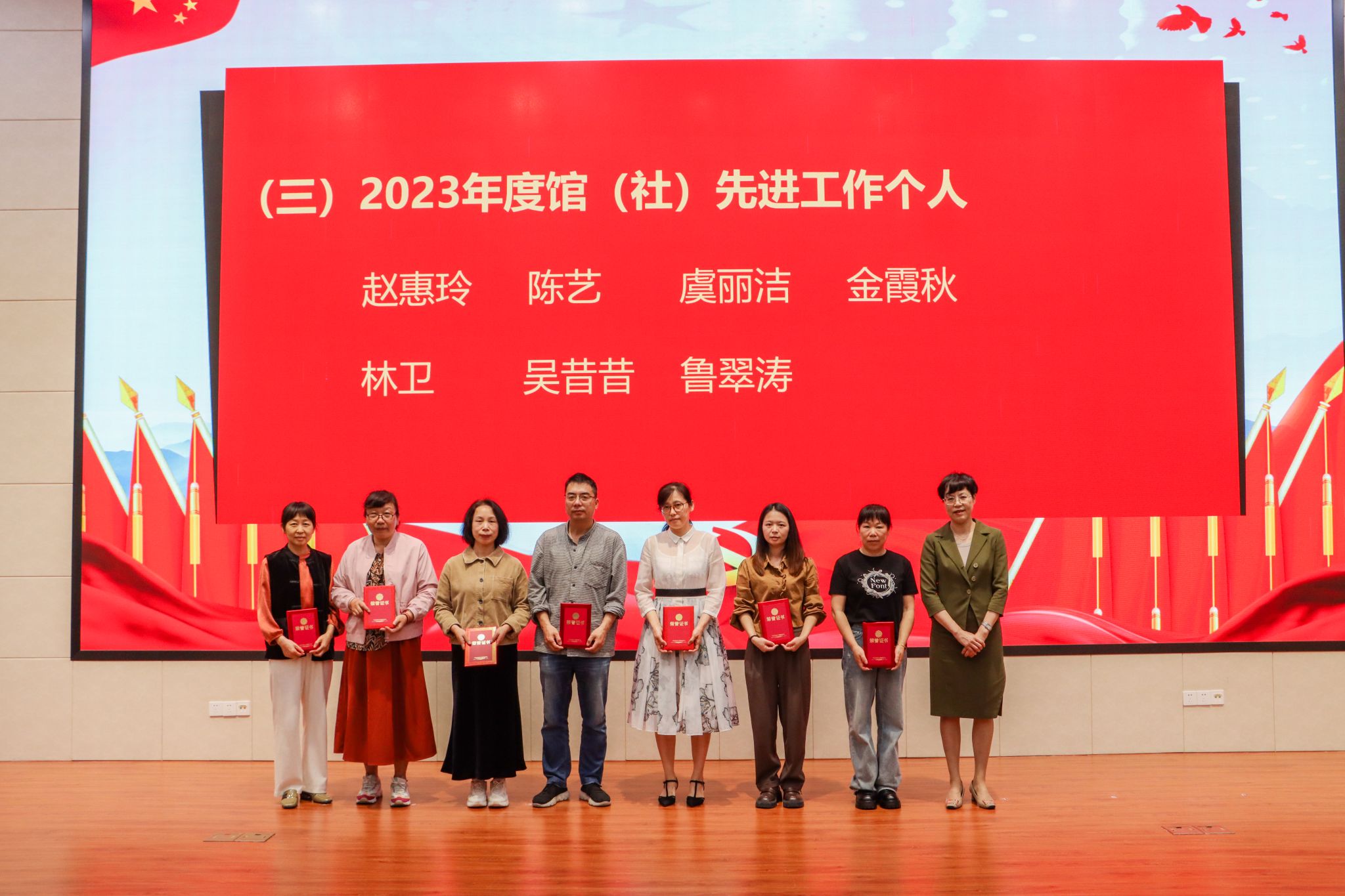 会上,对馆(社)2023年度优秀工会干部、优秀工会积极分子、宣传工作先进个人、书香科室、书香党支部、荐书达人、先进工作个人、考核优秀科室和馆(社)工作30年以上教职工进行了表彰。为表达对退休老同志的敬意,会上还为虞丽洁、吴益纯、赵惠玲三位老师举行了退休欢送仪式。
