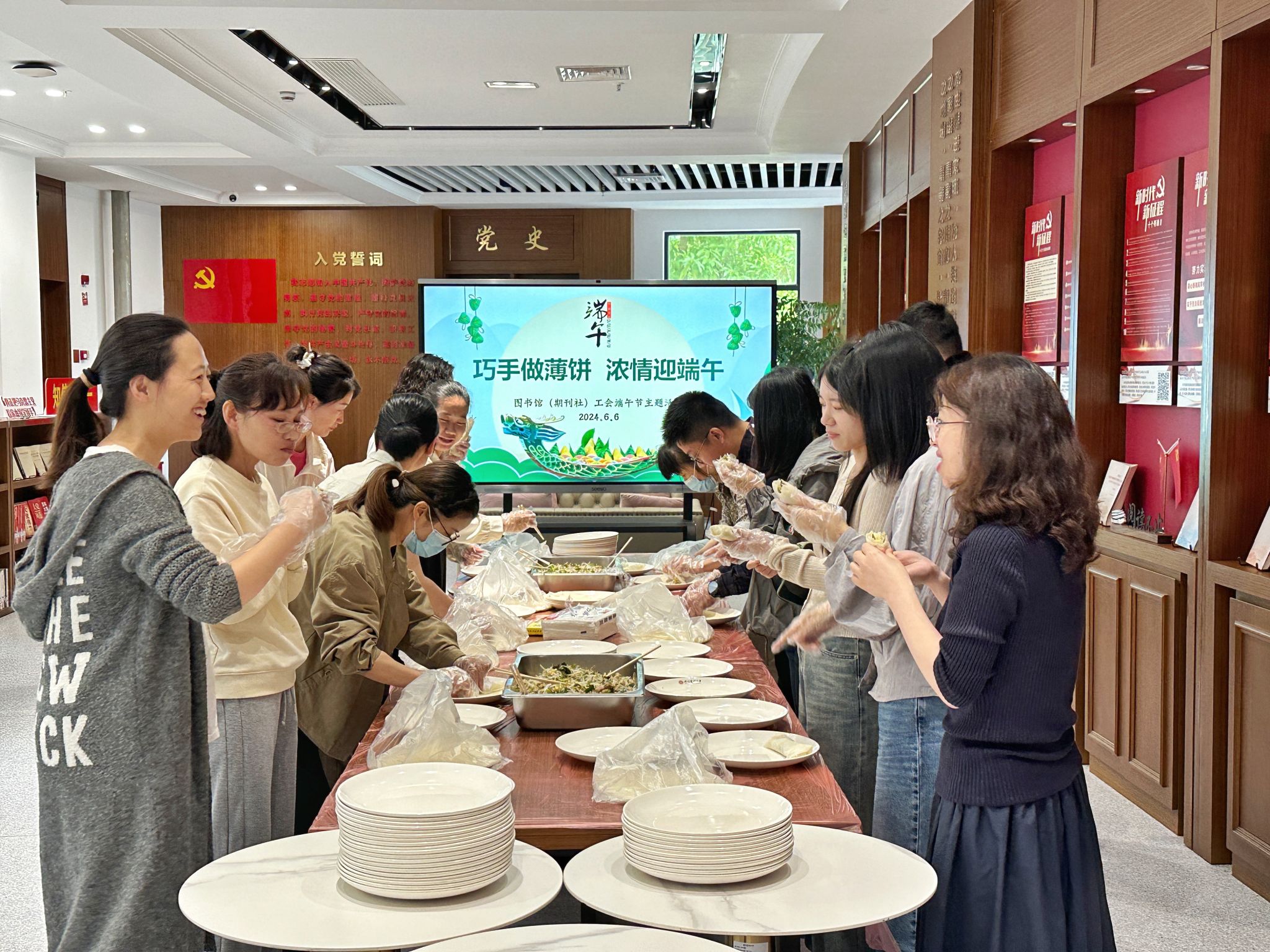 为弘扬中华民族优秀传统文化,丰富教职工精神文化生活,图书馆(期刊社)工会于6月6日中午在青春之书房举办了“巧手做薄饼 浓情迎端午”端午节主题活动,工会会员齐聚一堂,制作薄饼、品尝粽子,共同感受浓厚的节日氛围。