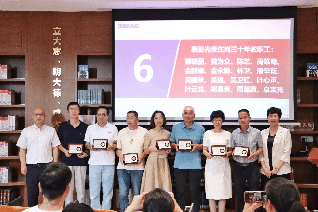 随后,馆(社)领导为“光荣在岗三十年”教职工颁发纪念徽章,并合影留念,感谢他们三十年如一日,用自己的青春和汗水为图书馆(期刊社)和学校的发展贡献了自己的力量。